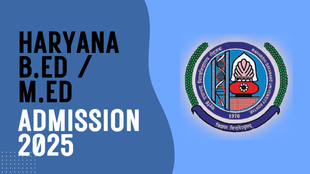 Haryana B.Ed and M.Ed Admission 2025:- Maharshi Dayanand University (M.D.U), Rohtak has released a notification for admission to B.Ed and M.Ed (including B.Ed. Special Education / M.Ed. Special Education) Course in Various Govt., Govt. Added & Private Colleges / Institute affiliated to M.D.U, Rohtak Session 2025 – 26. Eligible candidates can apply online from 21.07.2025 to 15.09.2025 using given link below. Other details like educational qualification, age limit, admission process & how to apply are given below……